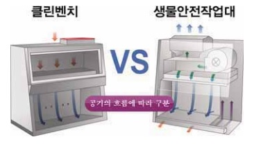 <그림1. 클린벤치와 생물안전작업대 구분>