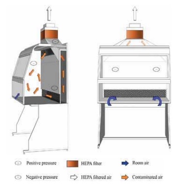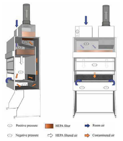 대표적인 일차적 물리밀폐 실험 장비인 생물안전작업대(biosafety cabinet, BSC)의 종류