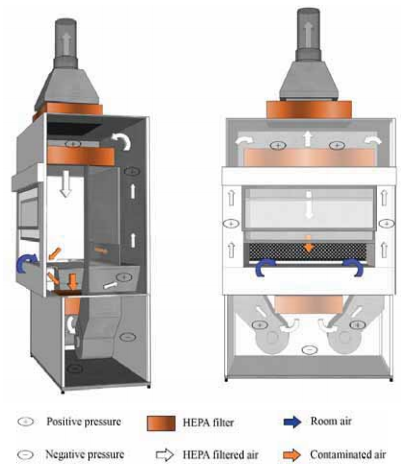 <그림4. ClassⅡ Type A1 BSC(통풍구에 음압이 걸려있음) / Type A2 BSC>
