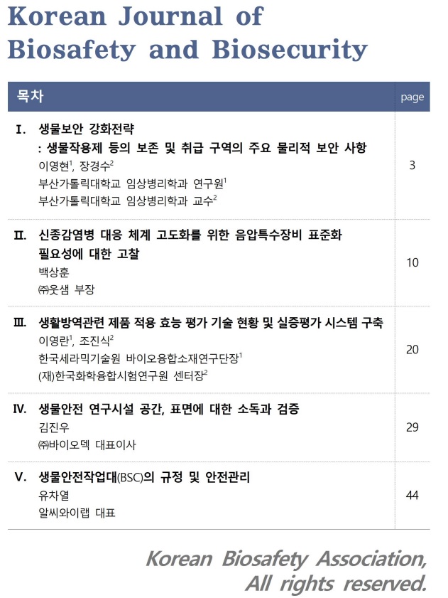 한국생물안전협회 전자저널 4권 1호 (2023.07)
