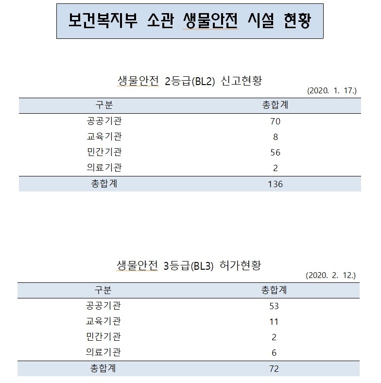 [질병관리본부] 보건복지부 소관 생물안전 시설 현황 (2020.02.12) 작성자 최고관리자 조회 389 작성일 2020-02-17 안녕하세요. 한국생물안전협회입니다. 보건복지부 소관 생물안전 시설 현황을 첨부해드리니 업무에 참고하시길 바랍니다. 감사합니다. [출처 : 질병관리본부 국립보건연구원 자료실] 첨부파일 보건복지부 소관 생물안전 시설 현황(2020.02.12).hwp 이전글 다음글 목록