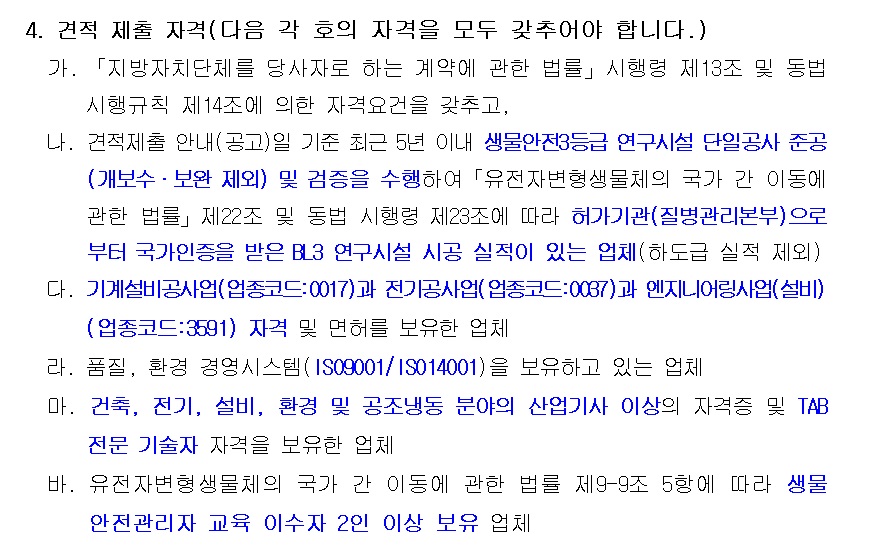 전라남도 공고 "생물안전 3등급 연구시설 개보수공사 안내 공고"를 올려드립니다.