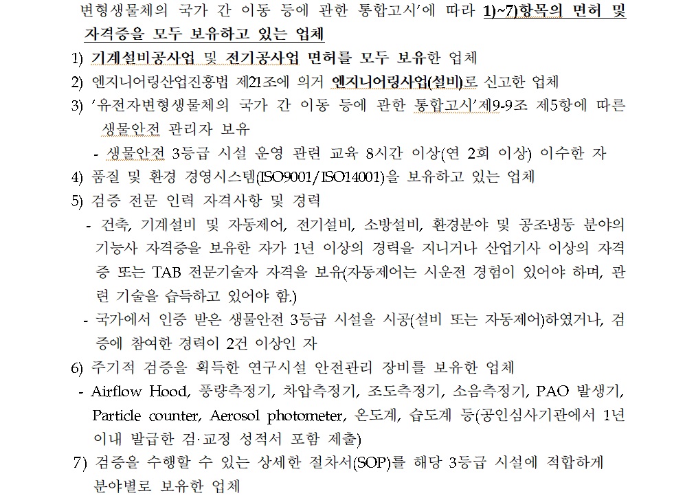 [나라장터] 생물안전 3등급(BL3) 연구시설 재확인을 위한 검증 용역 (2020.02.26~28)