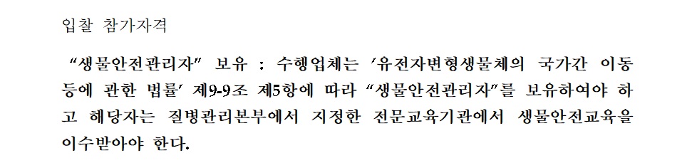 백신검정과 특수실험실[생물안전3등급(BL-3)실험실/무균실험실]벨리데이션 용역 공고를 안내드립니다.