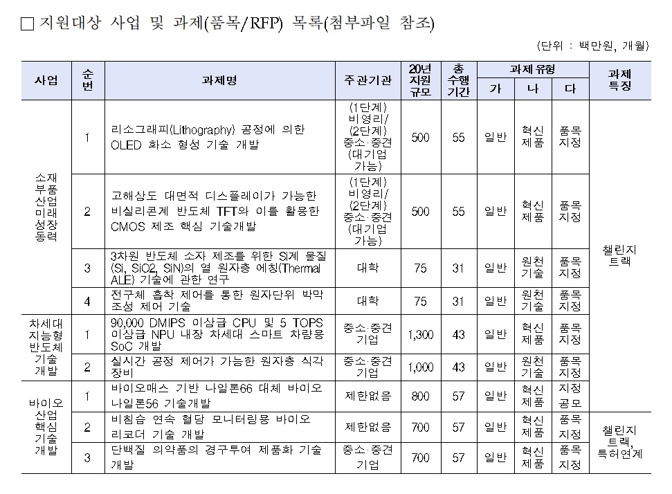 2020년도 산업기술 챌린지트랙 신규지원 대상과제 공고를 안내드립니다.