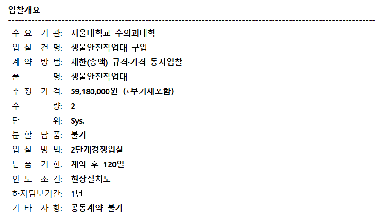 [나라장터] 서울대 수의과대학 생물안전작업대 구입 재공고 (~06.23) 작성자 최고관리자 조회 211 작성일 2020-06-18 안녕하세요. 한국생물안전협회입니다. 서울대 수의과대학 생물안전작업대 구입 재공고를 안내드립니다. [나라장터 바로가기] 감사합니다. 이전글 다음글 목록