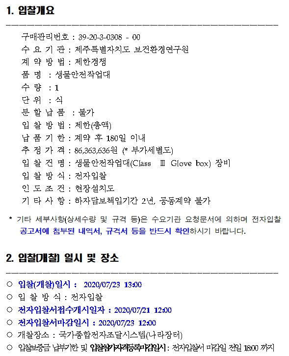 [나라장터] 생물안전작업대(Class Ⅲ Glove box) 장비 (~07.23) 작성자 최고관리자 조회 211 작성일 2020-07-15 안녕하세요. 한국생물안전협회입니다. 제주 보건환경연구원 공고 '생물안전작업대(Class Ⅲ Glove box) 장비'를 안내드립니다. 감사합니다. 이전글 다음글 목록