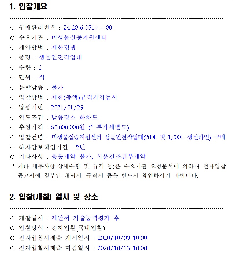 [나라장터] 미생물실증지원센터 생물안전작업대 구매 (~10.13) 작성자 최고관리자 조회 248 작성일 2020-09-22 안녕하세요. 한국생물안전협회입니다. 미생물실증지원센터 생물안전작업대 구매 공고를 안내드립니다. [나라장터 바로가기] 감사합니다. 이전글 다음글 목록