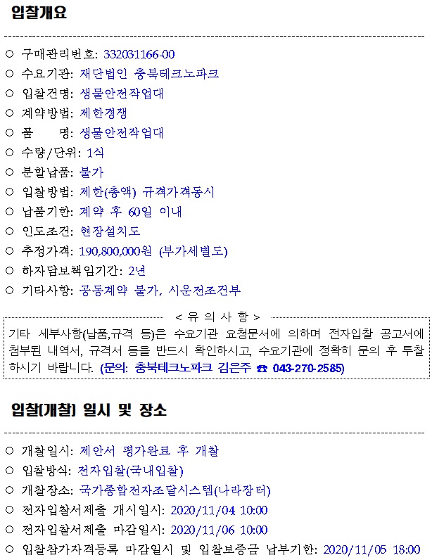 [나라장터] 생물안전작업대 구매 (~11.6) 작성자 최고관리자 조회 276 작성일 2020-10-27 안녕하세요. 한국생물안전협회입니다. 재단법인 충북테크노파크 생물안전작업대 구매입찰 공고를 안내드립니다. 감사합니다. [나라장터 바로가기] 이전글 다음글 목록