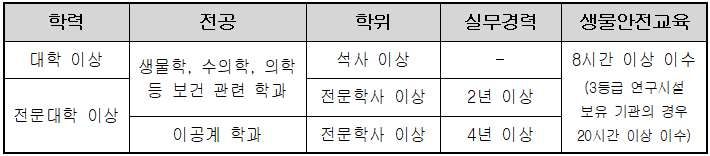 3. 생물안전관리책임자의 임명 기준