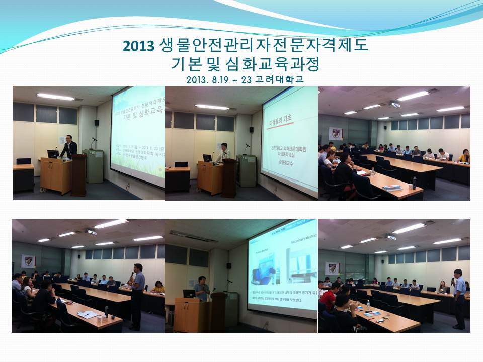 2013 생물안전관리자 전문자격제도 기본 및 심화교육과정 진행 사진
