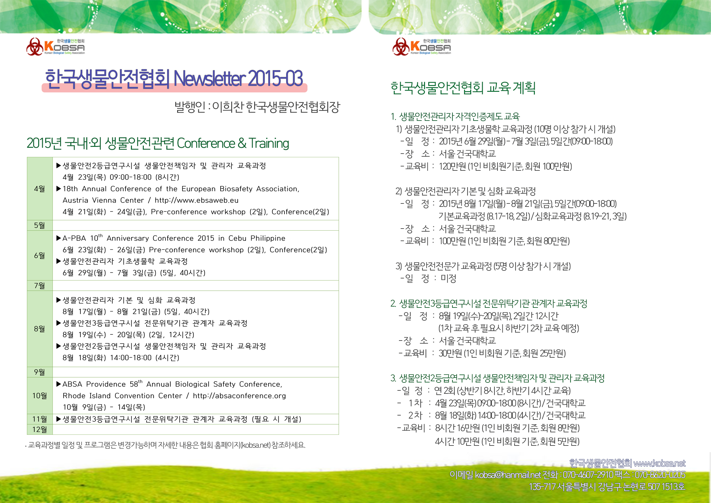 2015년 3월 뉴스레터(교육일정)