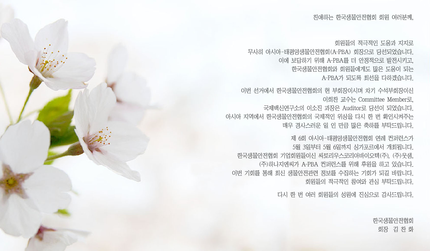 A-PBA 회장 당선 공지. 작성자 KOBSA 조회 3,659 작성일 2011-04-06 한국생물안전협회 김찬화 회장님께서 아시아-태평양생물안전협회(A-PBA) 회장으로 당선되셨습니다. 이전글 다음글 목록