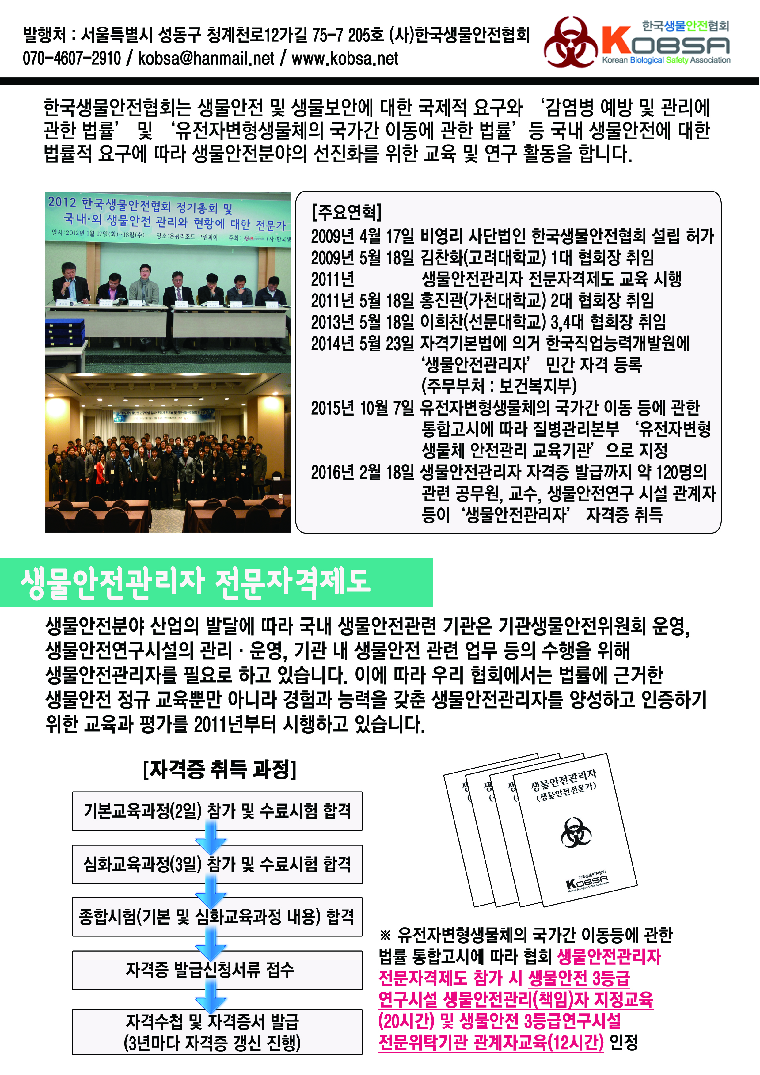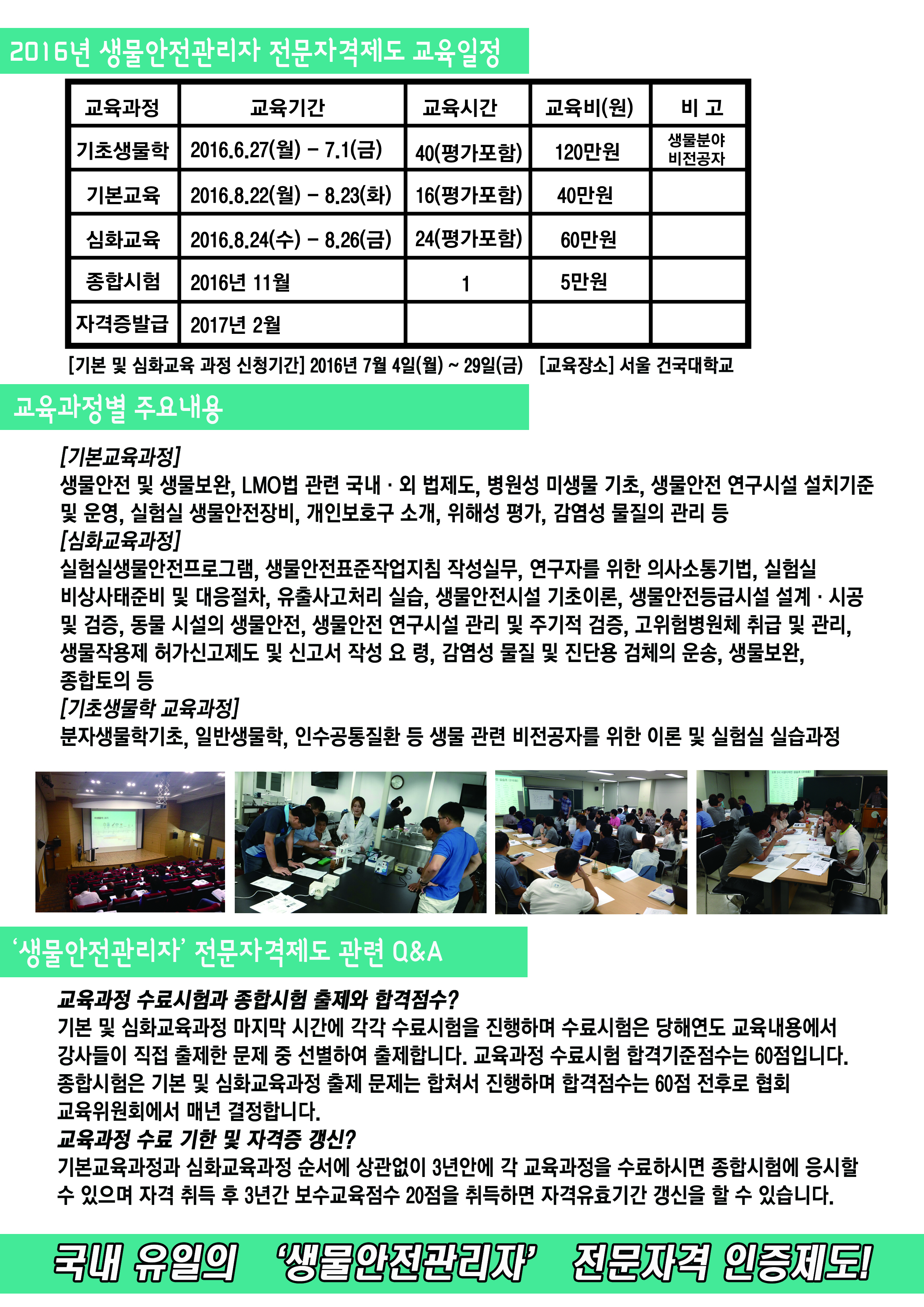 2016년 생물안전관리자 전문자격제도 홍보물입니다.