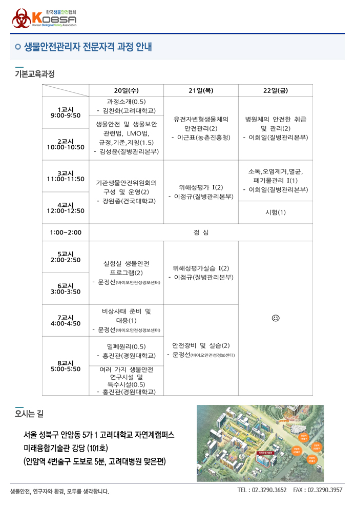 [생물안전관리자 전문자격 - 기본교육] 세부일정 안내.