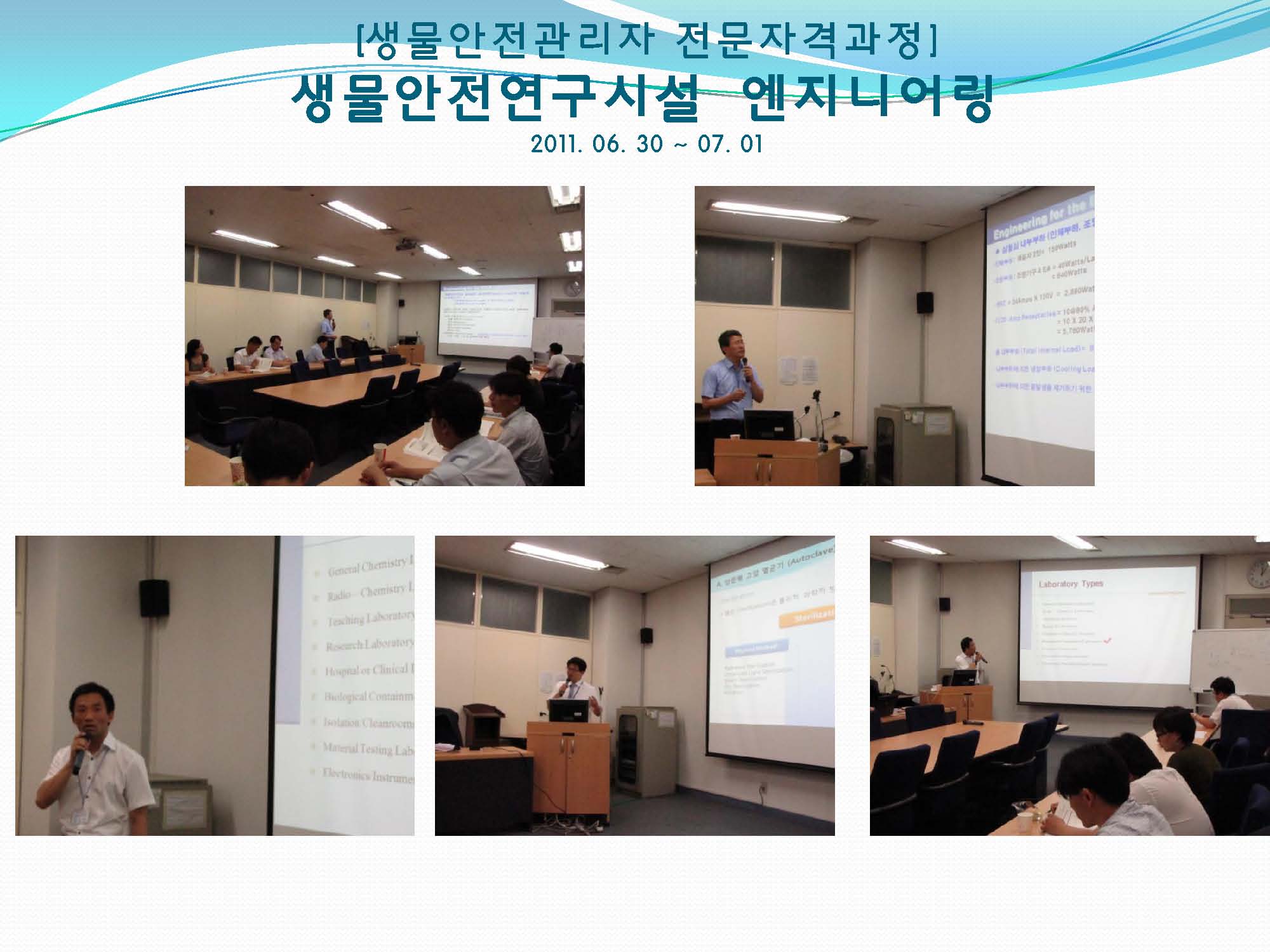 [생물안전관리자 전문자격 - 심화과정2: 엔지니어링] 사진 :: 작성자 KOBSA 조회 4,520 작성일 2011-08-17 지난 2011년 6월 30일부터 7월 1일까지 개최된생물안전연구시설 엔지니어링 교육 사진입니다. 이전글 다음글 목록
