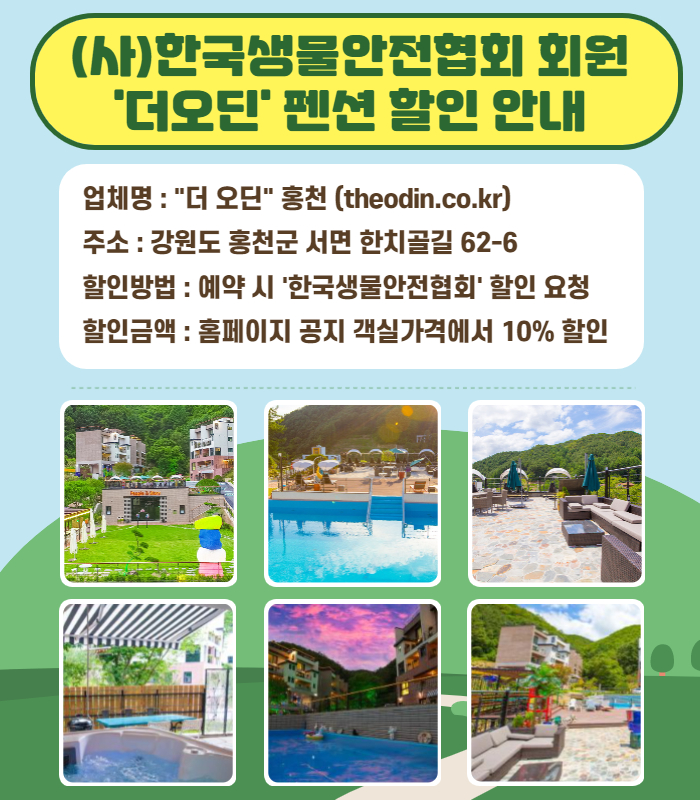 한국생물안전협회 회원 '더오딘' 펜션 숙박 할인 안내