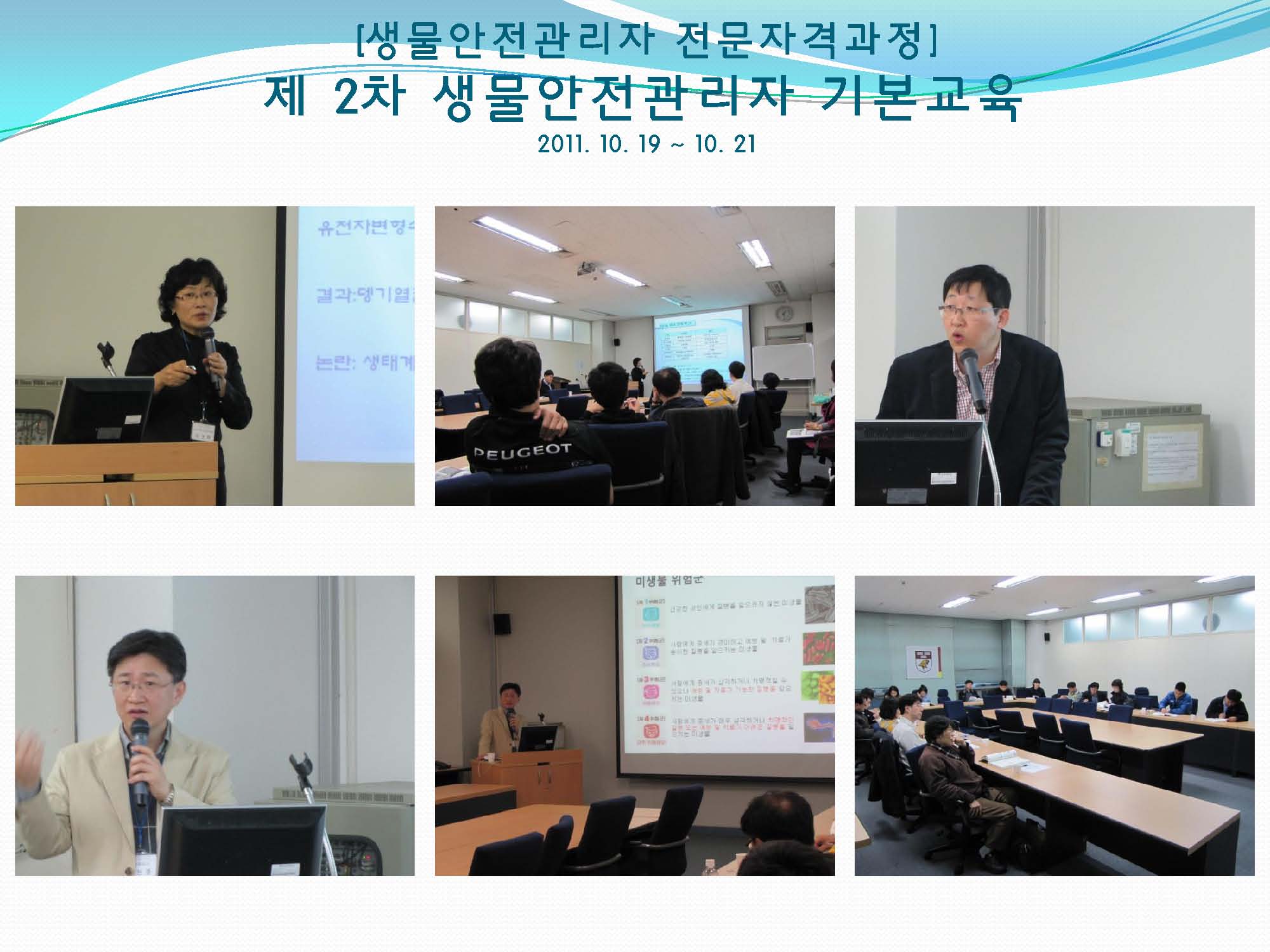 [생물안전관리자 전문자격 : 제 2차 기본교육] 사진 작성자 KOBSA 조회 6,061 작성일 2011-11-23 2011년 10월 19일(수)부터 21일(금)까지 고려대학교 생명과학대학에서 개최되었던 [생물안전관리자 전문자격 : 제 2차 기본교육] 사진입니다. 이전글 다음글 목록