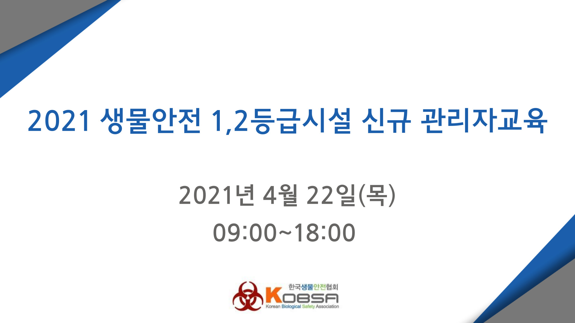 2021년 생물안전 1,2등급시설 신규 관리자교육(지정교육) 보고