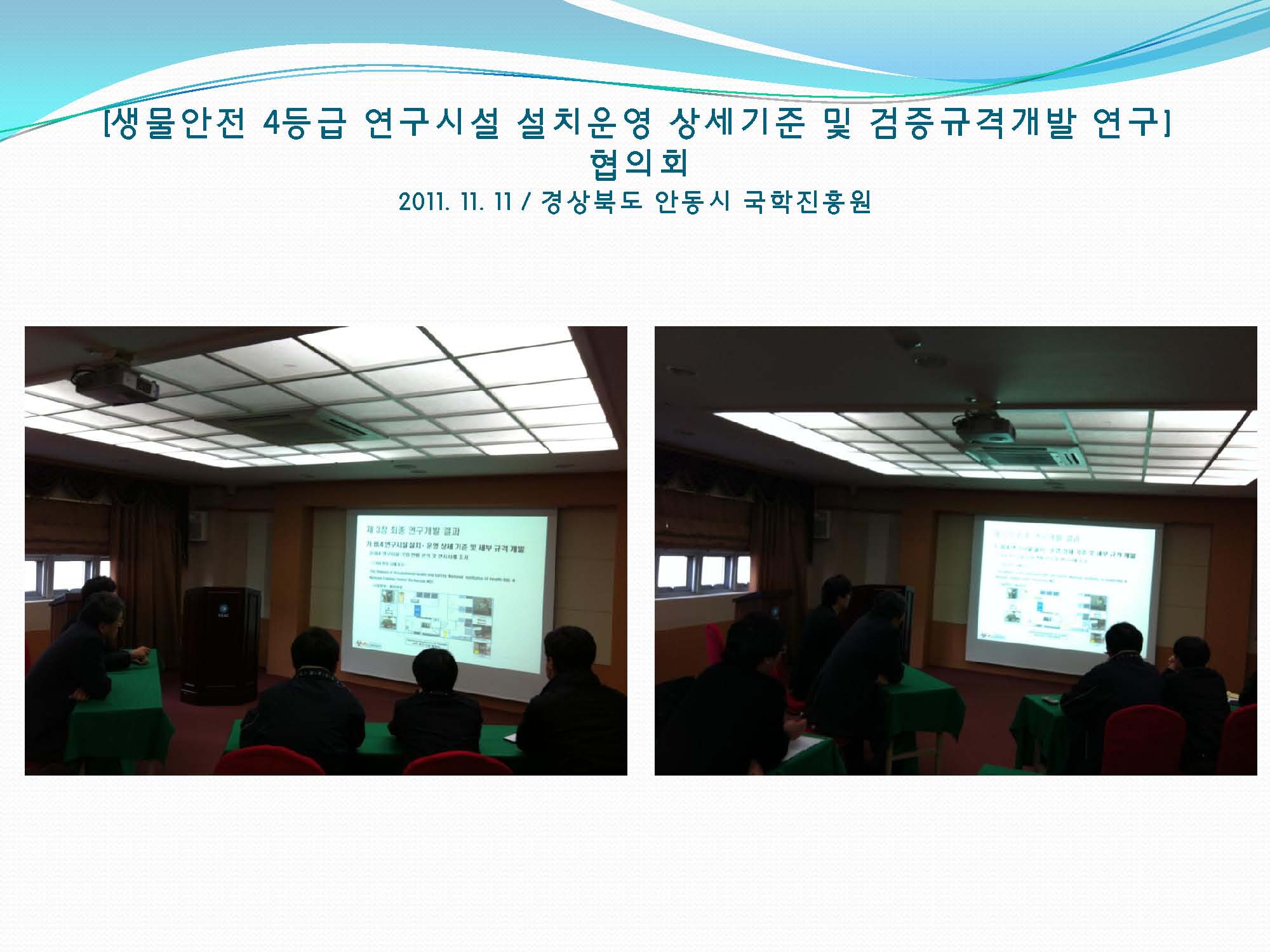 [생물안전 4등급 연구시설 설치 운영 상세기준 및 검증규격 개발연구] 협의회 작성자 KOBSA 조회 6,569 작성일 2011-11-24 2011년 11월 11일에 경북 안동시 국학진흥원에서 개최되었던[생물안전 4등급 연구시설 설치 운영 상세기준 및 검증규격 개발연구] 과제 관련협의회가 아래와 같이 진행되었습니다. 이전글 다음글 목록