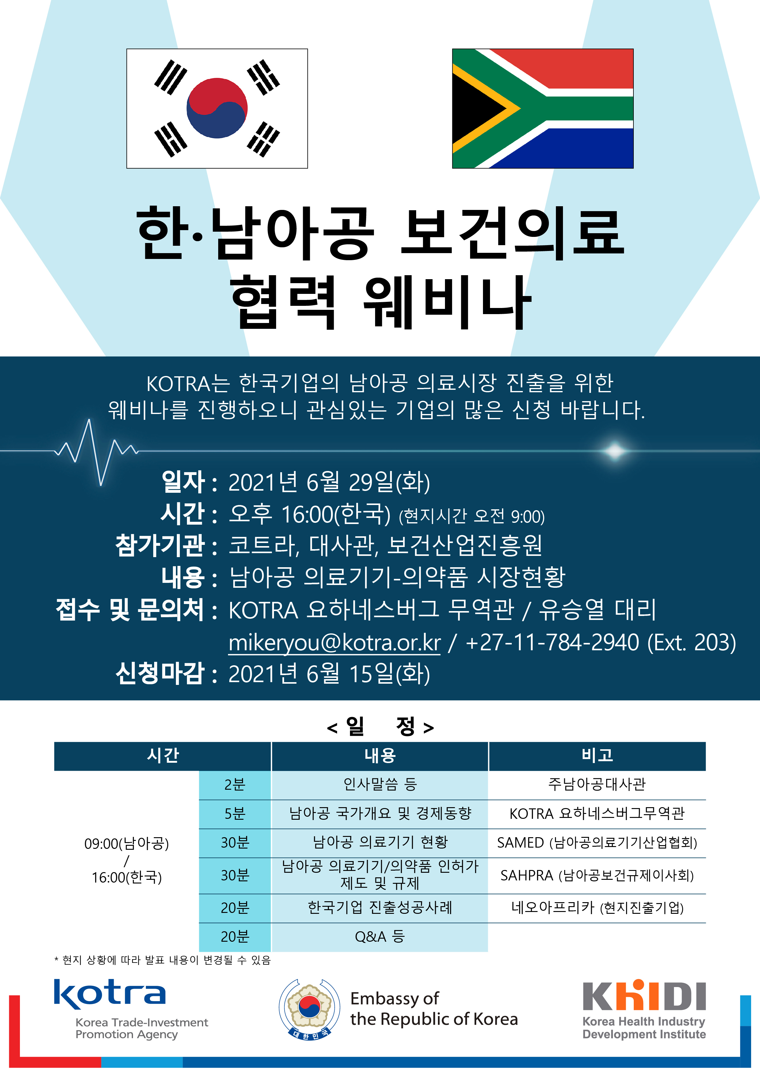 한-남아공 보건의료 협력 웨비나 개최(6.29) 안내