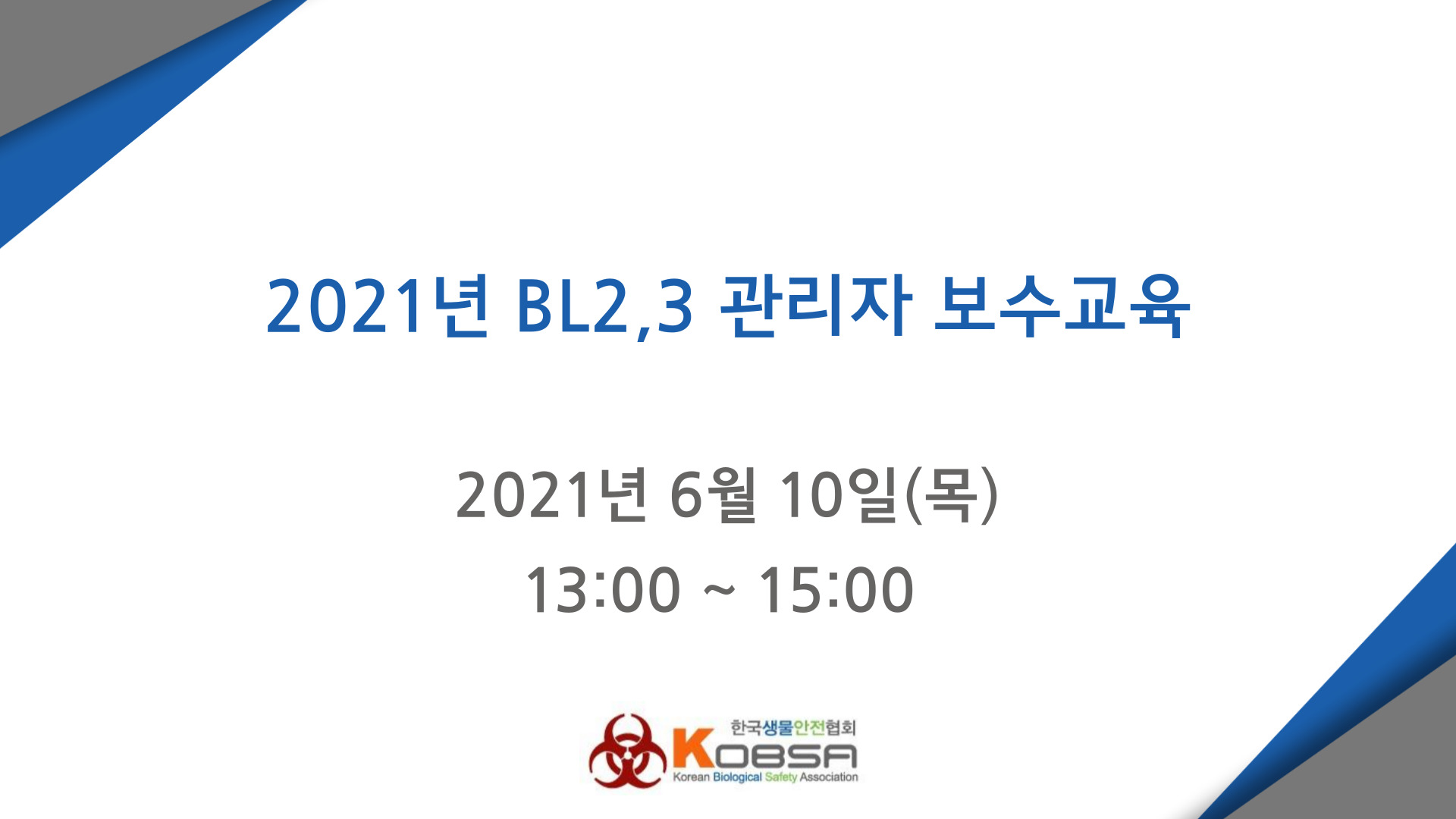 2021년 생물안전 2,3등급시설 관리자 보수교육 보고