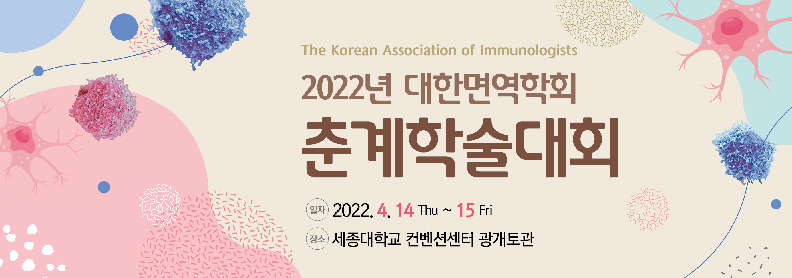 대한면역학회에서는 2022년 4월 14일(목) ~ 15일(금) 2일간 세종대학교 컨벤션센터에서 2022년 대한면역학회 춘계학술대회를 하이브리드(온∙오프라인)로 개최합니다.