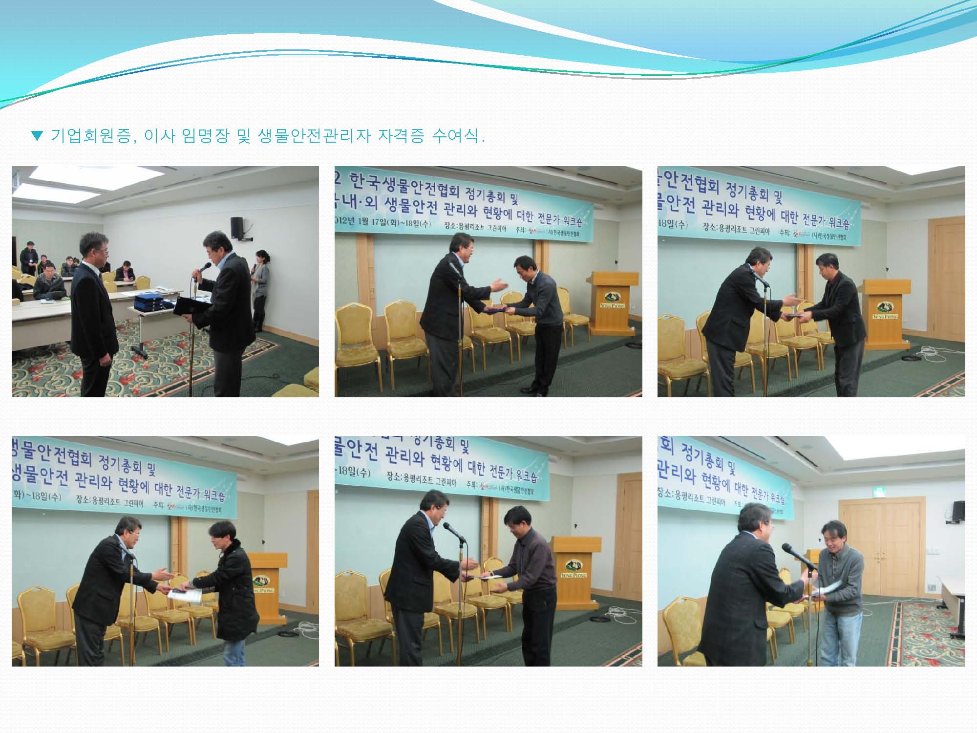 [2012 한국생물안전협회 정기총회 및 국내.외 생물안전 관리와 현황에 대한 전문가 워크숍]사진 작성자 KOBSA 조회 10,033 작성일 2012-02-24 지난 2012년 1월 17일(화)부터 18일(수)까지 용평리조트에서 개최되었던,[ 2012 한국생물안전협회 정기총회 및 국내.외 생물안전 관리와 현황에 대한 전문가 워크숍]사진입니다. 이전글 다음글 목록