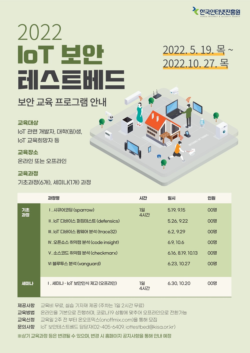 [한국인터넷진흥원] 2022년 IoT 보안테스트베드 이용 및 교육 안내(5.16~10.27) 작성자 홈페이지 관리자 조회 920 작성일 2022-05-13 첨부파일 2022년_IoT_보안테스트베드_이용_및_교육_신청서.pdf 이전글 다음글 목록