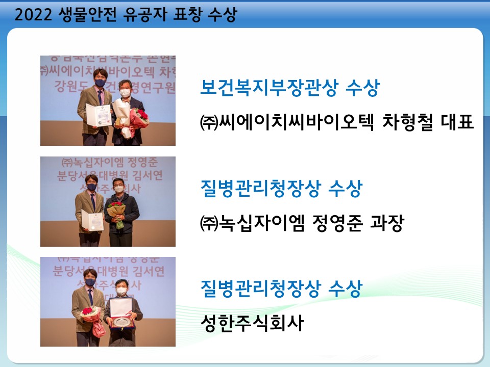 2022 생물안전 유공자 표창 한국생물안전협회 회원 수상자