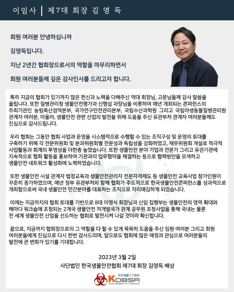 제7대 협회장 김영득 이임사