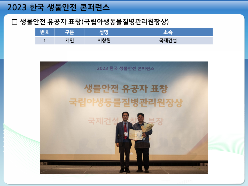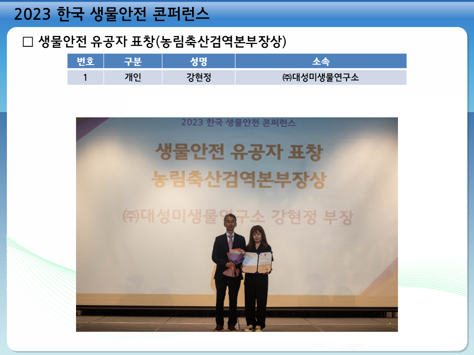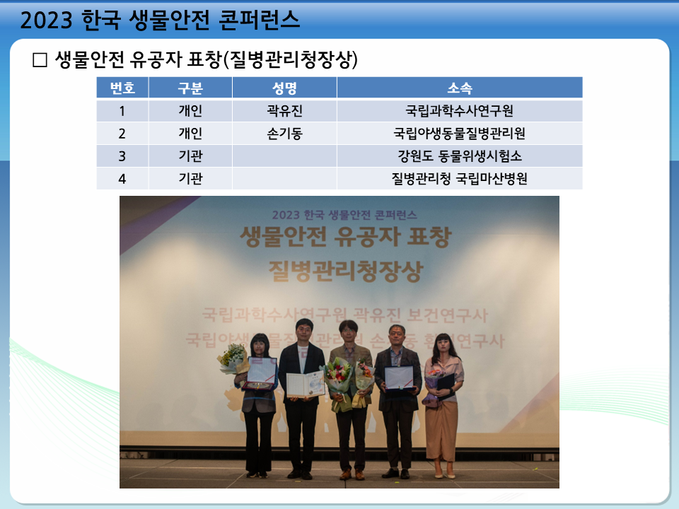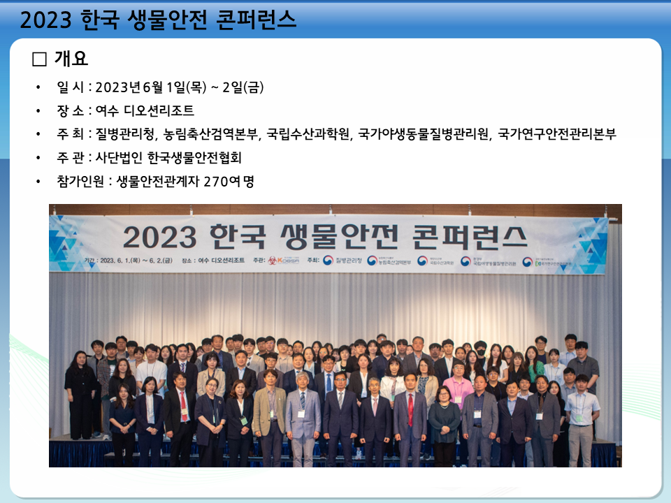 2023 한국 생물안전 콘퍼런스(6.1-2, 여수) 결과