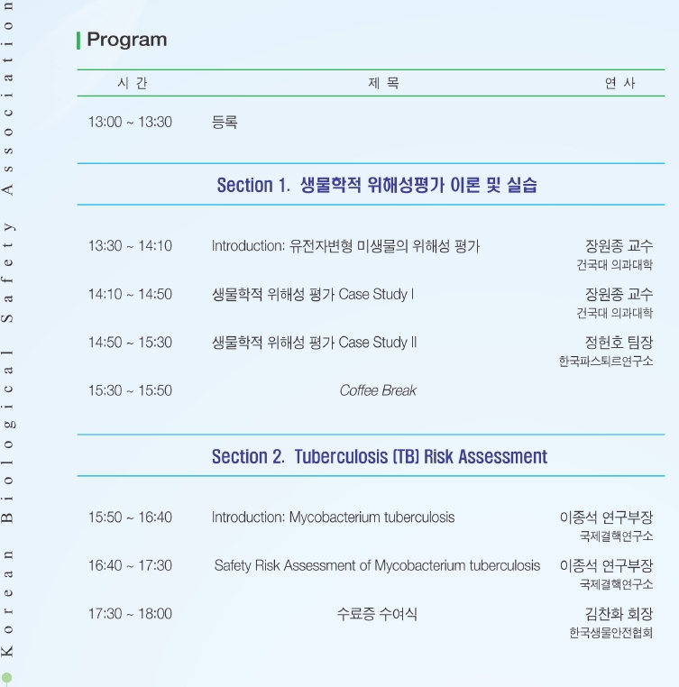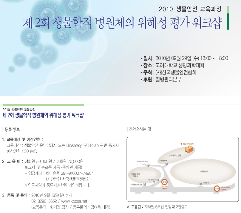 (2010 생물안전 교육과정) 제 2회 생물학적 병원체의 위해성 평가 워크샵. 작성자 KOBSA 조회 3,486 작성일 2010-08-17 * 참가 신청서는 좌측상단에 있습니다. 첨부파일 위해성평가 참가신청서.hwp 이전글 다음글 목록