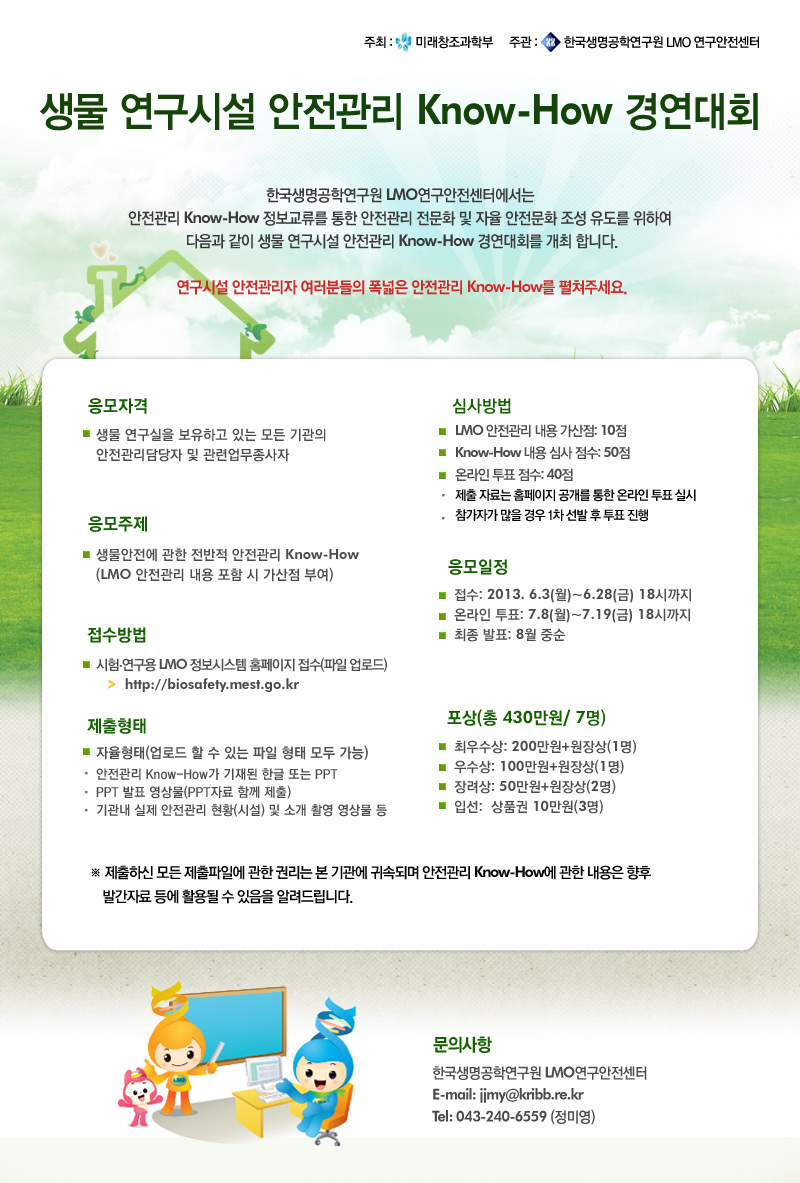 생물 연구시설 안전관리 Know-How 경연대회 안내 작성자 KOBSA 조회 2,466 작성일 2013-05-28 감사합니다 첨부파일 생물 연구시설 안전관리 Know-How 경연대회 안내.jpg 이전글 다음글 목록