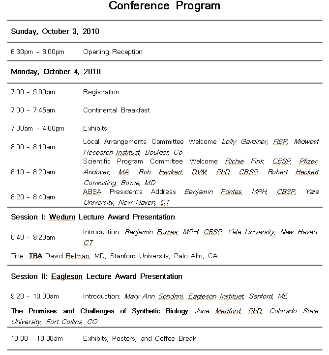 Preconference Courses: Sept 30 - Oct 3, 2010